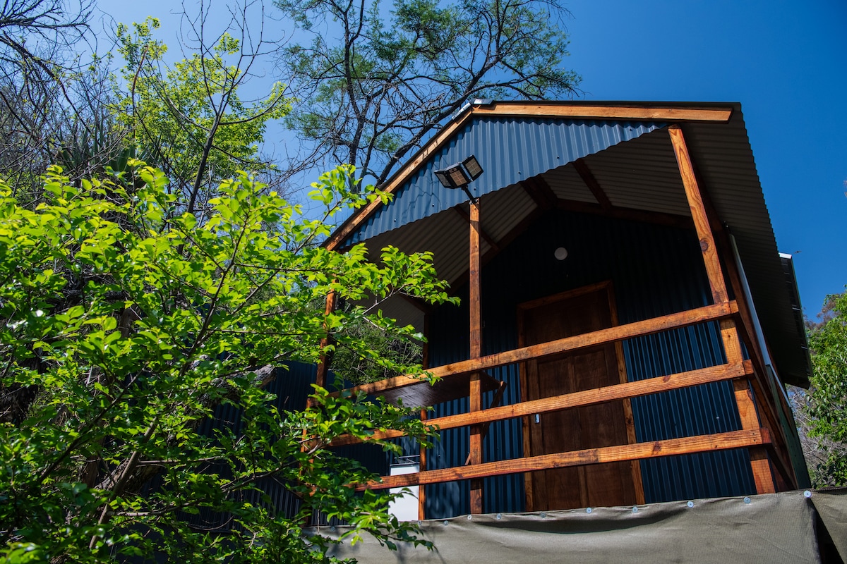 Este lugar único tiene un estilo por sí solo. Esta propiedad única promete una experiencia única con una mezcla de belleza moderna y natural con vistas al parque. El área al aire libre consta de una piscina de chapuzón con un horno de leña para calentar el agua para esas inmersiones de la noche anterior, también puedes disfrutar del horno de pizza hecho a medida y probar a mano una pizza casera. Luego, para los más aventureros, una ducha al aire libre se esconde en el arbusto para esa experiencia africana.