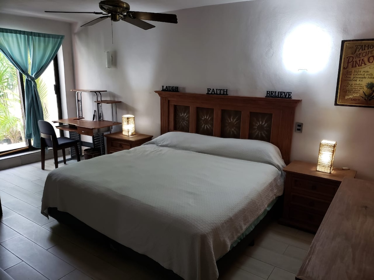 1 dormitorio para 5 personas. Equipado con 3 ventiladores y 2 unidades de aire acondicionado. PAGAS POR LA ELECTRICIDAD que consumas, APROXIMADAMENTE 4 DÓLARES AL DÍA O, si dejas el aire acondicionado encendido todo el tiempo, podrían ser 8 dólares al día, no es normal. Cómodo, 2 niveles/ enfrente de la tienda de comestibles y la estación de policía en la zona de playa más exclusiva de Cancún, ¡a minutos de todo! 3 piscinas, seguridad 24/7, aparcamiento, wifi, equipado. Sí, la mejor ubicación y la playa favorita.