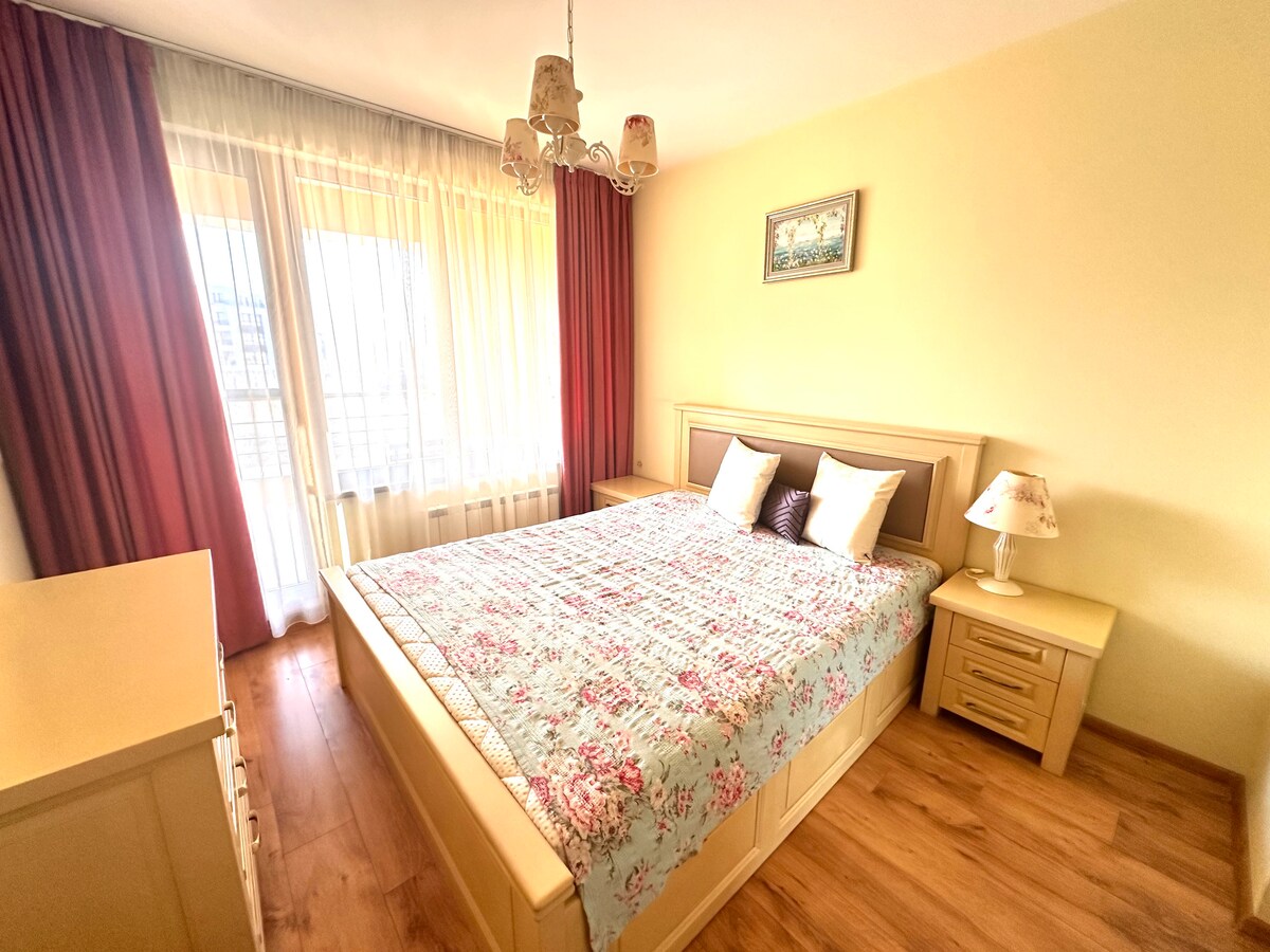 Modern apartment in a gated complex near the Inter Expo Center, only 10 min taxi from airport and 20 min metro to Bulgarian parliament. In close proximity are the Inter Expo Center, a number of shops and offices in the field of services and communications. Consists of: • Entrance hall • Living room with sleeping area • Kitchen • Bedroom 1 • Bedroom 2 • Bathroom with toilet • Balcony with access from both bedrooms • 24/7 security, video surveillance, access control,