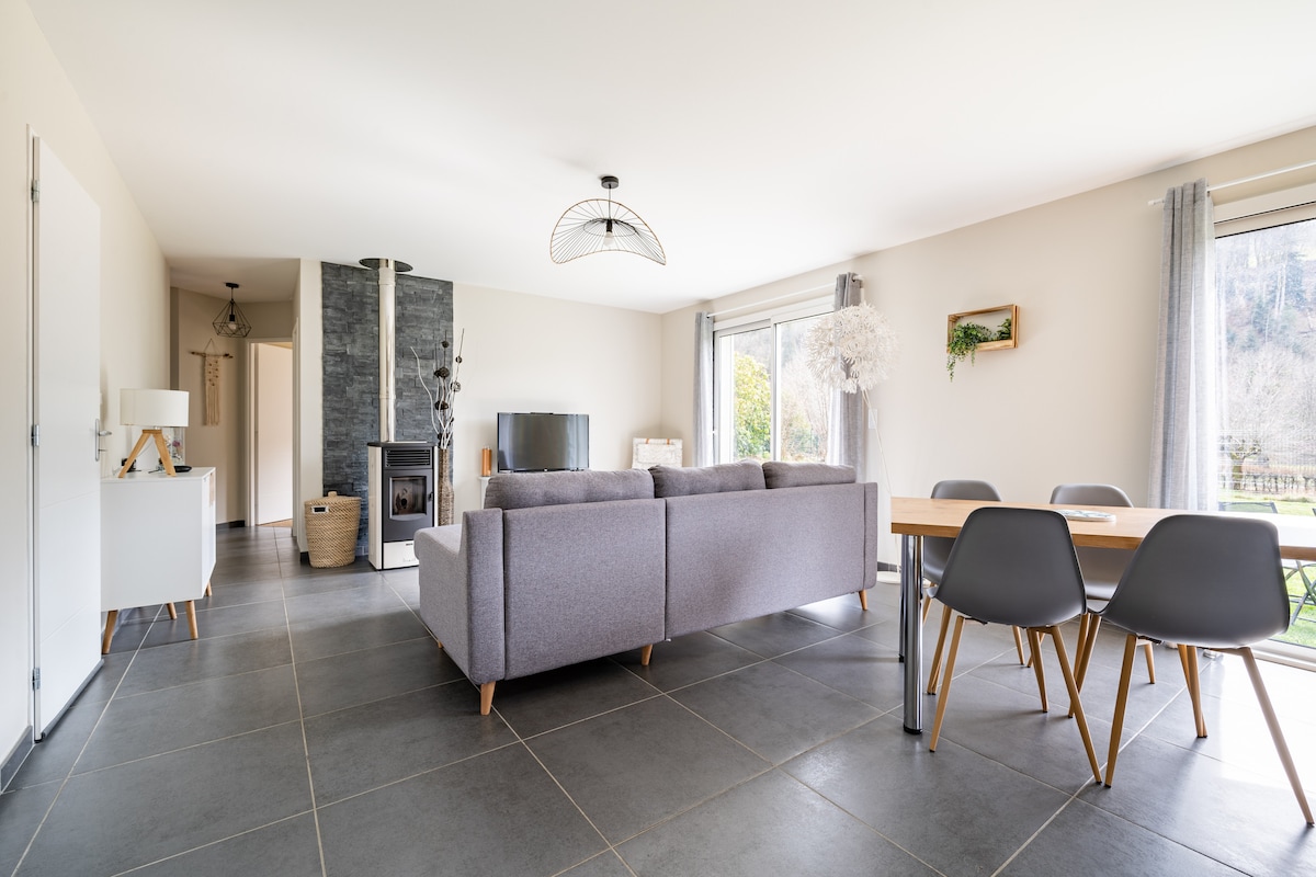 ¡Lugar ideal para descansar tranquilamente y desconectar! Nuestro apartamento es un dúplex de 100 m2, reformado y decorado en estilo escandinavo. Muy luminoso, se encuentra en una residencia tranquila, a 5 minutos a pie del centro de la Bourboule. Todas las tiendas, restaurantes, baños termales, casino, parque Fenestre y lanzaderas a las pistas de esquí están a poca distancia. En coche, las estaciones de esquí nórdico y alpino del Macizo de Sancy se encuentran a 10-15 minutos.