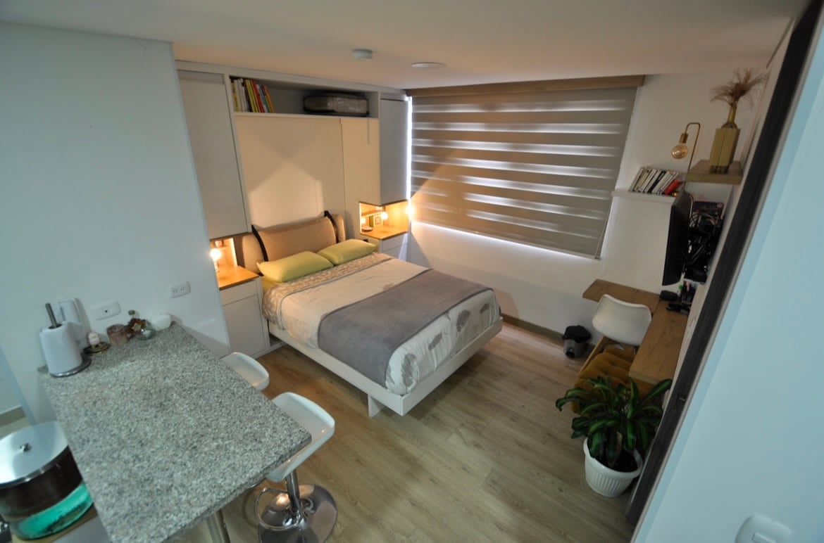 Recently renovated charming Studio. This place is strategically located: close to markets, museums, San Martin Mall, Monserrate, La Candelaria, La Plaza del Perseverancia, la Calle Bonita, National Park International Center (Financial zone), and countless restaurants, bars, and cultural activities that will make your visit to the city, an unforgettable experience. The building has a gym, coworking, pool area, and BBQ terrace on the top floor 360 View.