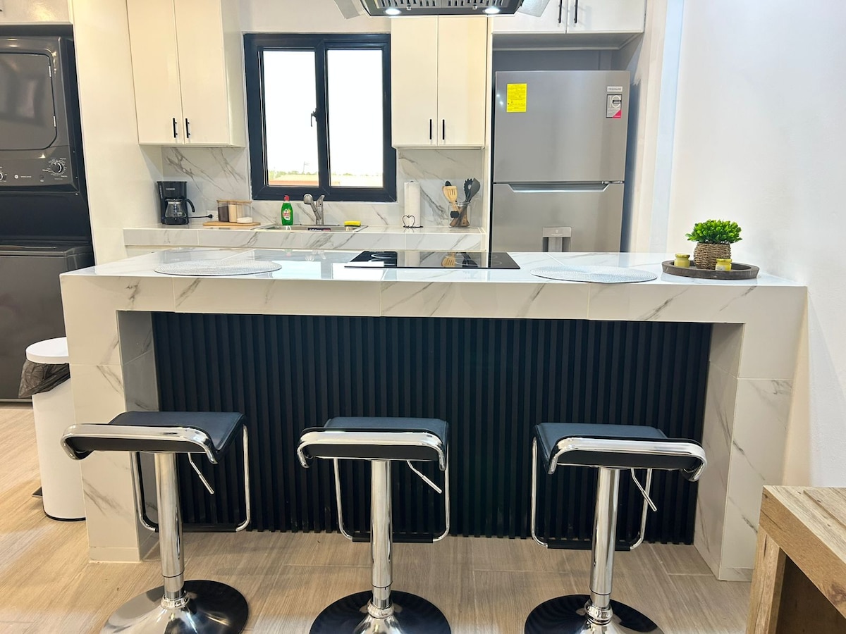 Departamento pequeño de lujo de dos dormitorios en una comunidad cerrada Ven a relajarte en este nuevo y hermoso espacio diseñado para la comodidad y la conveniencia. El departamento cuenta con agua caliente y tiene capacidad para 4 huéspedes. ✔️ Entrada privada ✔️ Se permite un auto por departamento ✔️ Comunidad cerrada segura y tranquila Para hacer el check-in, todos los huéspedes adultos tienen que presentar un documento de identidad válido. Este es un requisito obligatorio del complejo privado. Estas medidas de seguridad se implementan para garantizar que tu estadía sea segura.