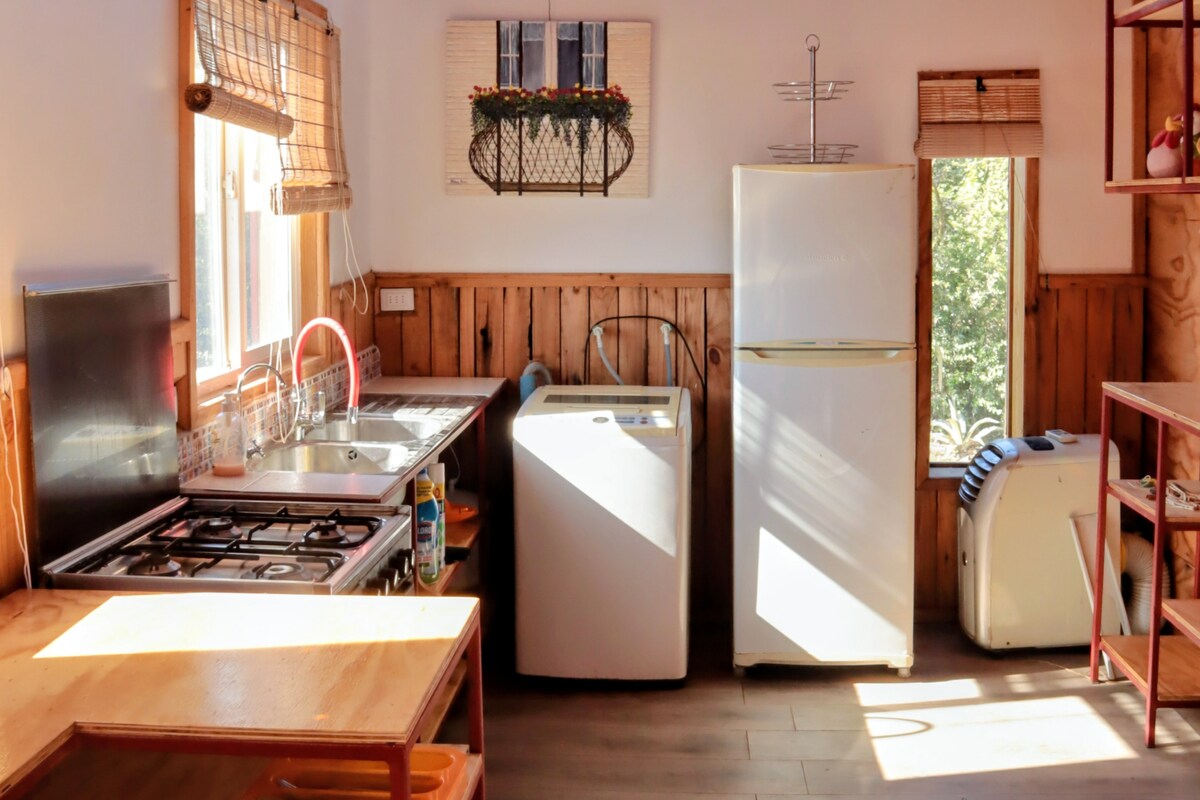 EXCLUSIVIDAD TOTAL. Cómoda cabaña hasta 4 personas. Privacidad. Acceso a estacionamiento y patio privado. Amplio patio. TODO CERRADO Y PRIVADO. Sector rural, tranquilo. 🍃 Corral con gallinas. Wifi rural. Estamos a 9 minutos de un centro comercial y conexión con carretera. *Tinaja de agua caliente adicional. Servicio con un costo extra. Bosca a leña al interior de la cabaña. Consulte 🏡✨ Reserva directo con Pablo Morales súperanfitrión.