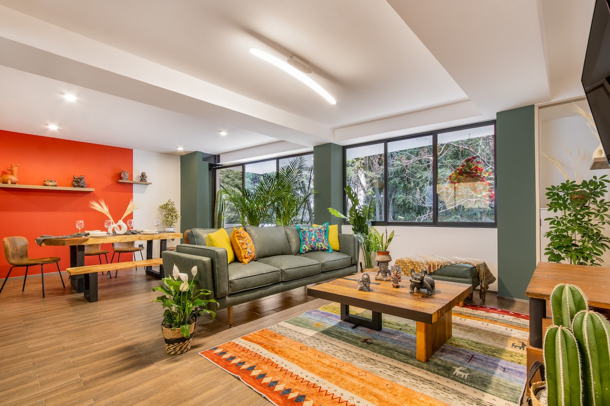 Enjoy the city in a unique and peaceful location in Roma Sur. Our loft, Xoxotic (green in Nahuatl), is located only a few blocks away from Condesa and Roma Norte, two of the “it” neighborhoods in the City, where you can find lovely cafés and bakeries, art galleries, indie boutiques, and some of the best restaurants in Latin America. The loft is on the second floor and there is no elevator, so you have to use stairs to get there.