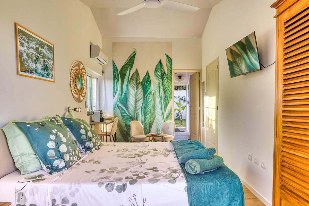 Situado en el sur salvaje, venga a descubrir la hermosa playa de grande-anse a 5 minutos. La ubicación ideal cerca del hotel de 5 estrellas Le PALM Apartamento de tipo T2 de 80 m2 con capacidad para 4 personas. Una habitación para 2 personas con jacuzzi, un sofá cama de 2 plazas, una cocina equipada y un baño con ducha a ras de suelo y su mueble de lavabo doble, un inodoro. Equipamiento: piscina, lavadora, jacuzzi, aire acondicionado, televisión, conexión a internet, una plaza de aparcamiento