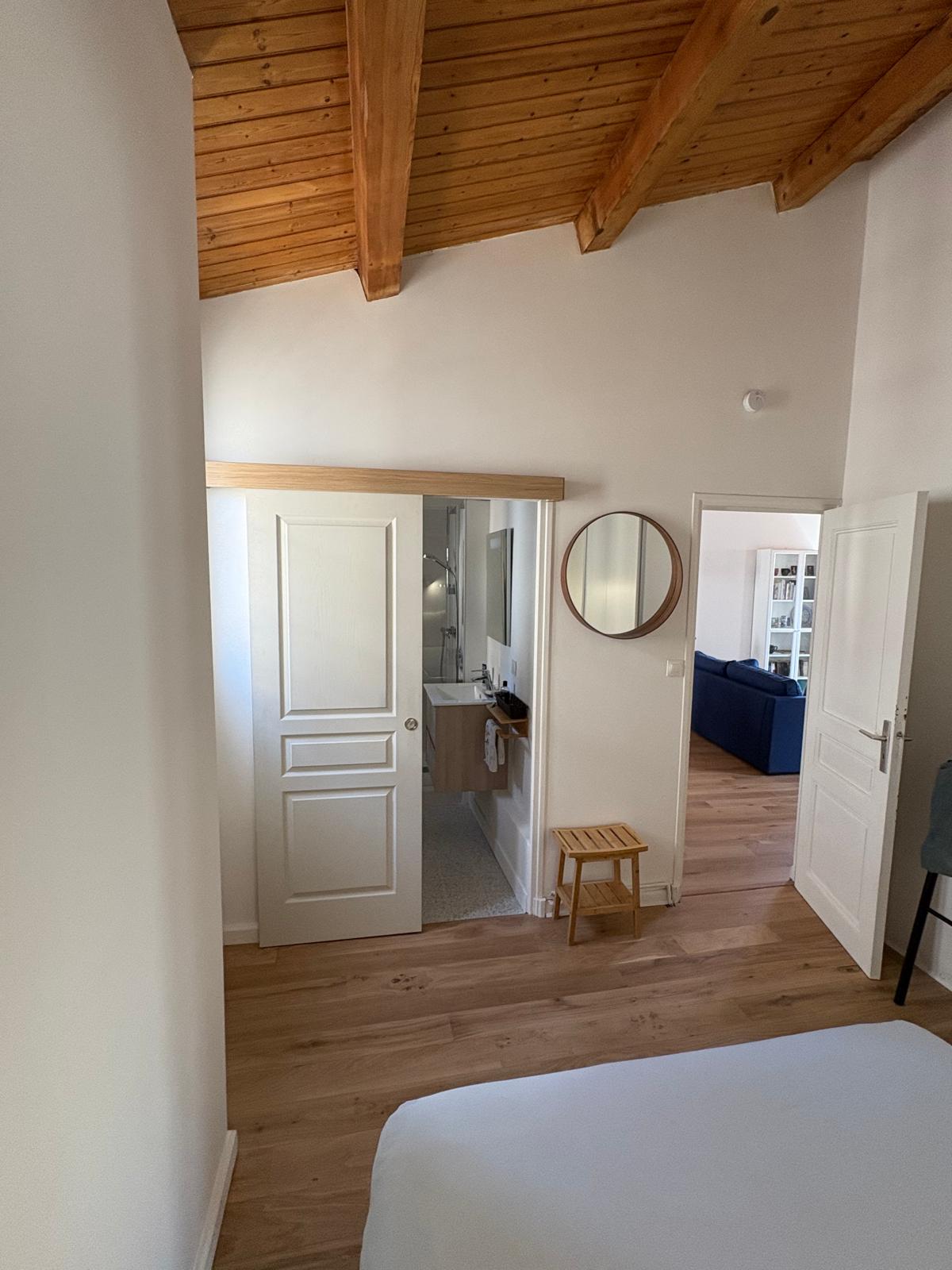 Plongez au cœur de l’architecture rochelaise 🏛️ dans un appartement où le bois et le métal se répondent avec élégance 🌿✨. Confortable et chaleureux, il s’ouvre sur une grande terrasse offrant une vue dégagée sur le centre historique et ses commerces 🛍️, pour un vrai moment de calme au milieu de la vie urbaine 🌇.