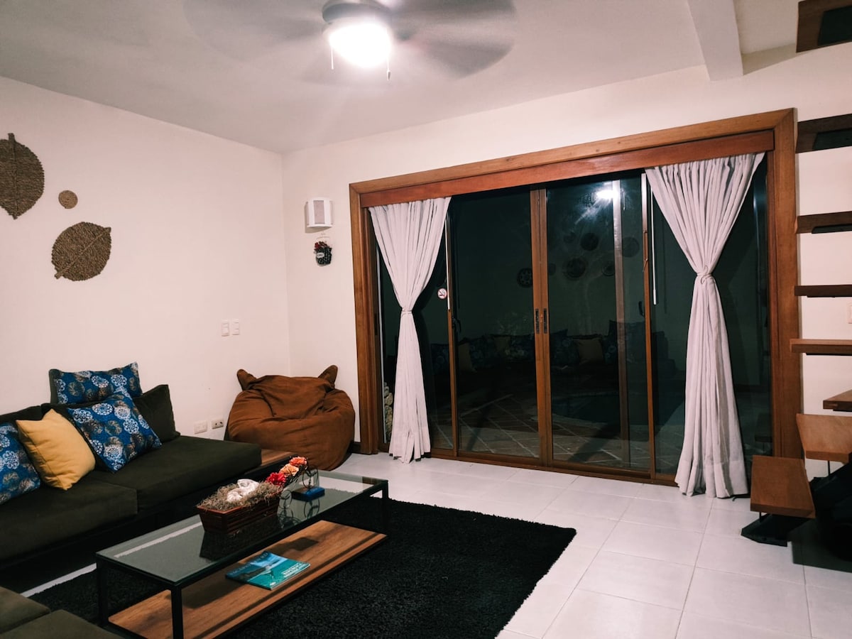 Experimenta la calidez y la hospitalidad de la República Dominicana alojándote con nuestra familia en nuestra encantadora casa de huéspedes. Tendrás una habitación privada y un baño para ti. Las áreas comunes se comparten con nuestra amable familia. Disfruta de la comodidad de un hogar lejos de la casa, con acceso a la cocina, comedor exterior, piscina y hermoso jardín. ¡Esperamos que tu estancia sea inolvidable y agradable!