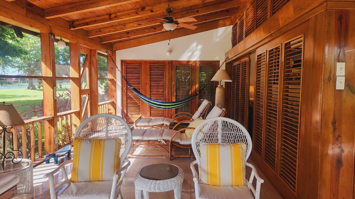 Located within world-renown Casa de Campo resort in the Dominican Republic. It has a very open layout and minutes from the beach, golf, tennis, and restaurants. The neighborhood is quite private and the resort is a gated community. NOTE: Property includes two staff that do housekeeping and cooking from 8:30a to 4p daily. Golf cart rentals and dinner prep are extra. The Casa de Campo Resort charges an additional $25 daily, per person fee. Please read: https://www.airbnb.com/help/article/3064