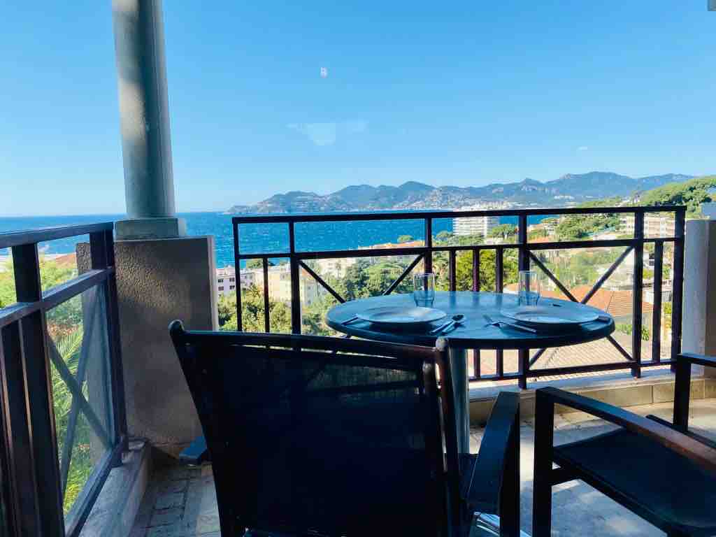 Superbe apt, 42m2+terrasses 19m2, vue panoramique époustouflante sans vis-à-vis depuis toutes les pièces ! Hyper équipé, tout confort. Les plus : climatisation réversible dans toutes les pièces, 2 piscines, parking privé sous-sol, barbecue, lit bébé, 2 télés, linge fourni, arrivée autonome. Idéalement situé ! Tout peut se faire à pieds : Mer à 100m. Tous sites, restaurants, transports, tous commerces dont 2 supermarchés aux environs immédiats. Cannes centre 3,5km par bord de mer.