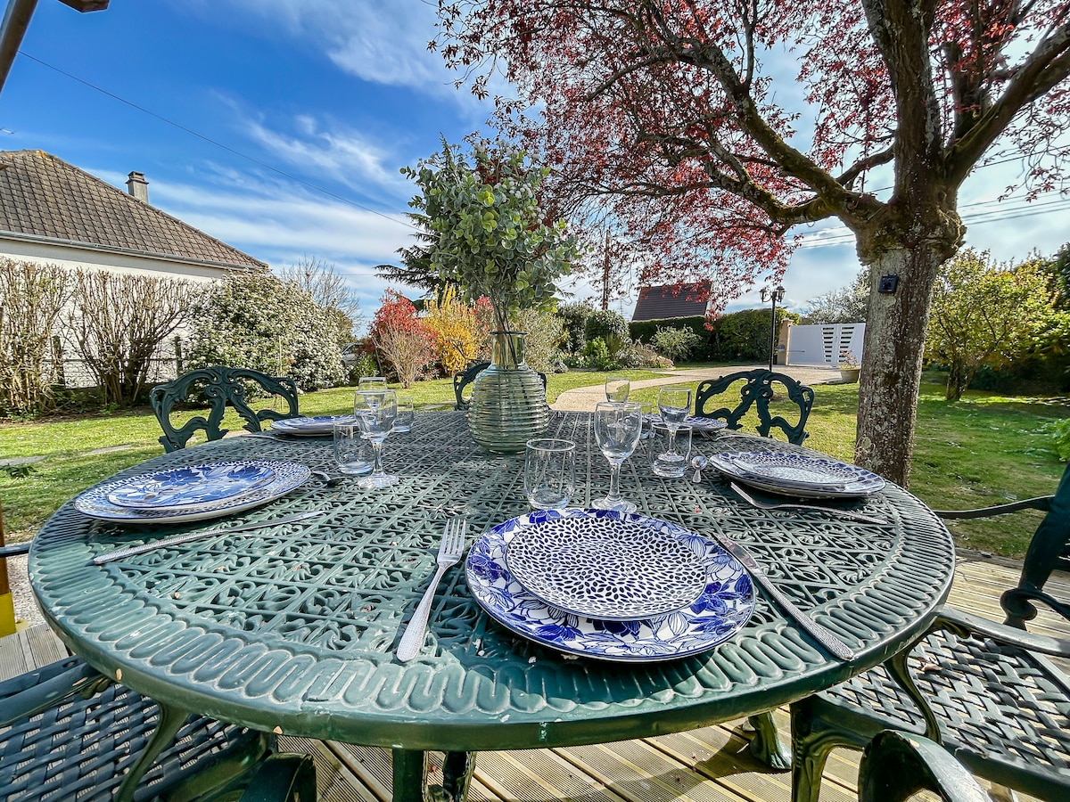En la planta baja encontrará una sala de estar abierta a la terraza y al jardín, con sofá cama de dos plazas. Una cocina (placa, microondas/tostadora, utensilios y vajilla), un cuarto de baño con bañera y sanitarios completa este nivel (lavadora disponible, mesa interior y exterior, barbacoa, acceso al jardín). En el piso de arriba hay una habitación disponible con una cómoda cama doble. Se proporcionan sábanas, paños de cocina y toallas.