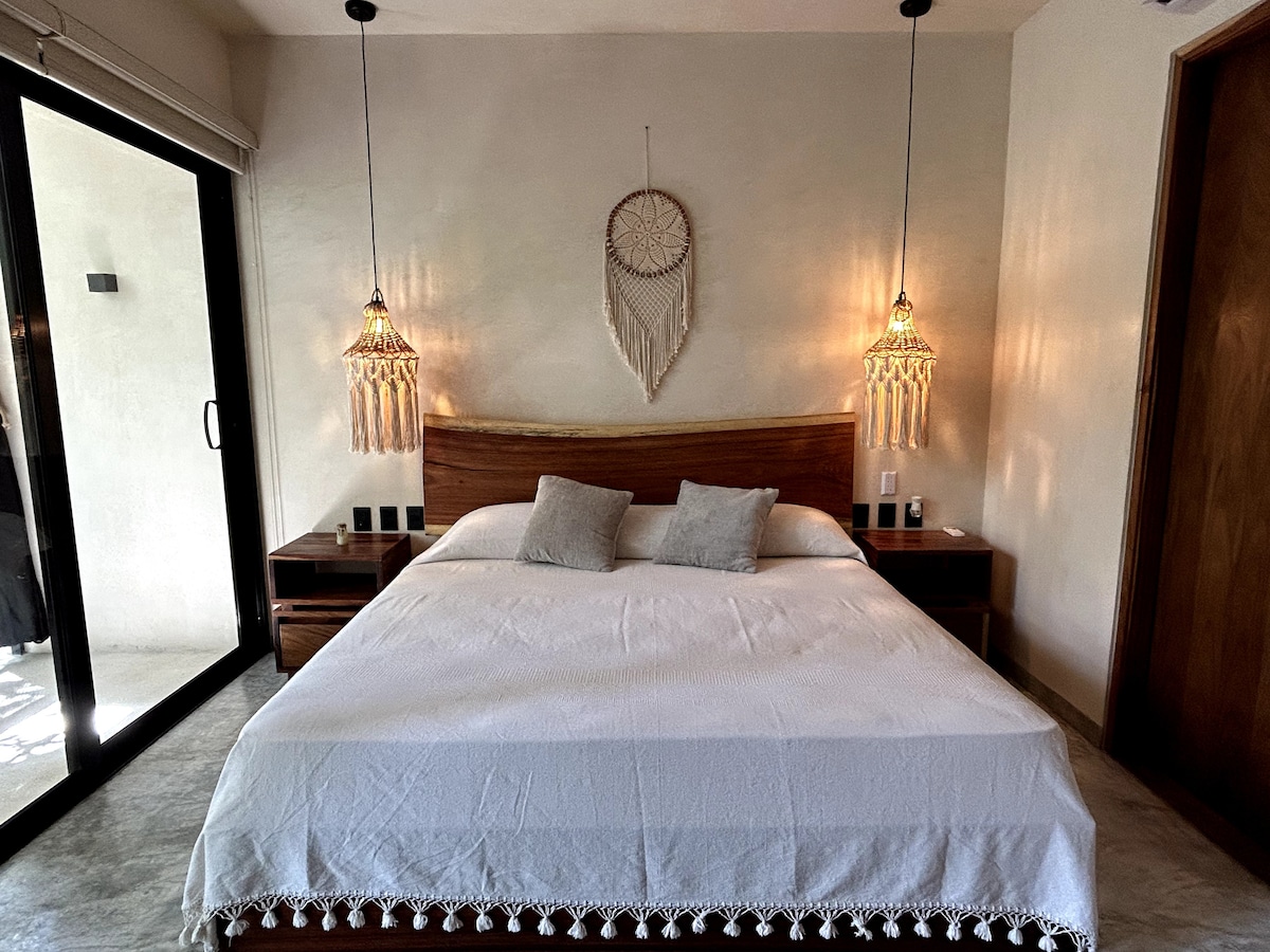A combination of Italian and Tulun design: dreamy and tropical common area with 2 beautiful pools to chill and unwind peacefully while getting a so longed for Caribbean tan. This comfortable and fully equipped Apartment, a lovely nest to come home to after a long and adventurous day on the beach has everything you might need for a relaxed stay: AC, ceiling fans, WIFI and comfy details all thoughtfully chosen for your most special time in Tulum. Relax and enjoy, we will take care of you! Welcome!