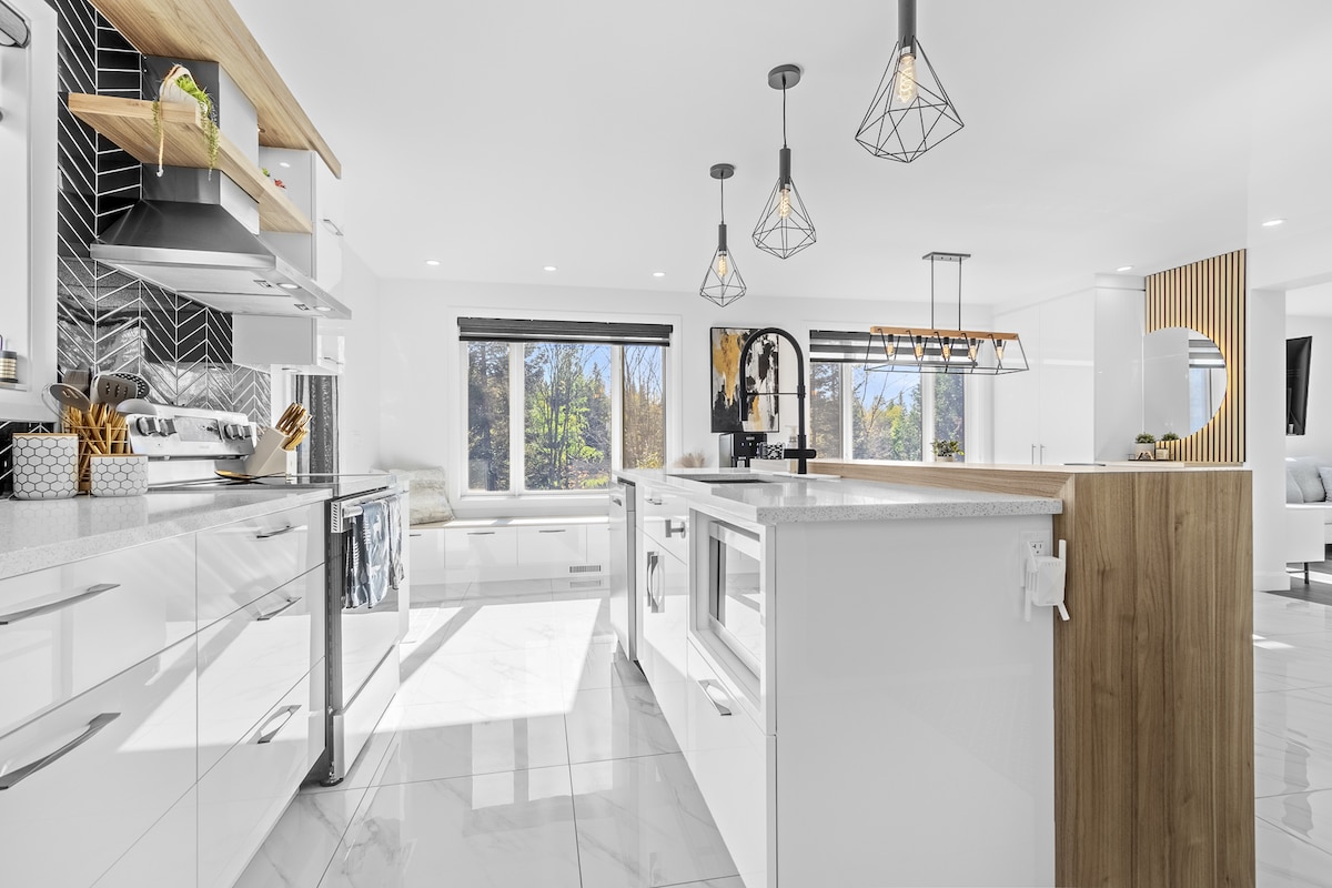 Descubre Le Havre de Xavier, un chalet suizo a 35 minutos del casco antiguo de Quebec, ideal para amigos, familias y parejas. Este refugio totalmente equipado ofrece 3 dormitorios con 3 camas y colchones de alta gama, un SPA abierto todo el año y 3 balcones con vistas espectaculares a las montañas. Wifi de alto rendimiento, estacionamiento gratuito y numerosas actividades cercanas (ciclismo, esquí, senderismo, motos de nieve, trineo) completan esta experiencia única en plena naturaleza. Cocina totalmente renovada en 2025.