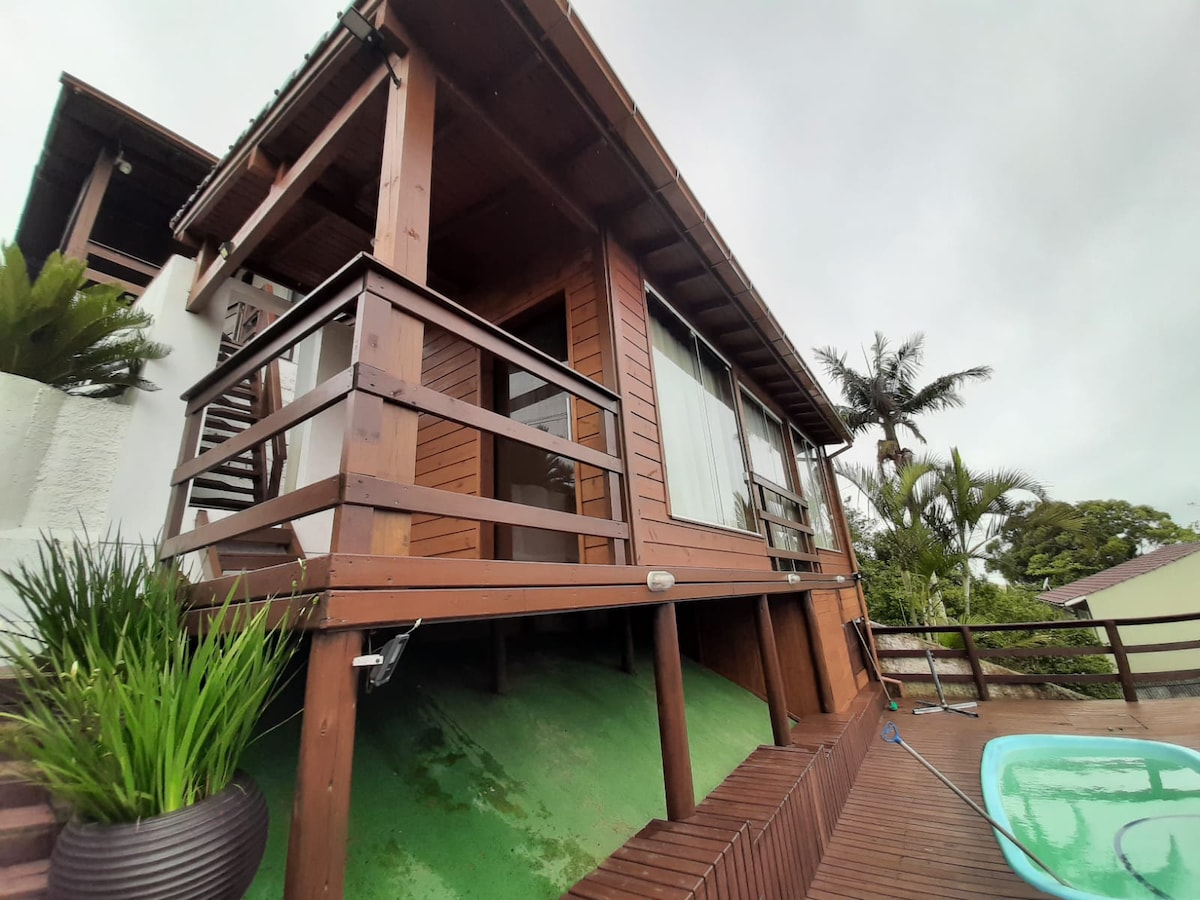 Cabaña rústica, encantadora y confortable en la zona central de Garopaba. La casa tiene sala de estar, baño, cocina equipada, altillo y zona de terraza con barbacoa. Aire acondicionado 12.000btus Internet WIFI fibra óptica 500 Mbps. Smart TV de 43 pulgadas con aplicaciones, Youtube y Netflix. Hermosa piscina natural con agua corriente, limpia y fresca. Para uso exclusivo de los huéspedes. Estacionamiento en el terreno con puerta electrónica. Lugar familiar, tranquilo y silencioso. Excelente para vacaciones y playas.
