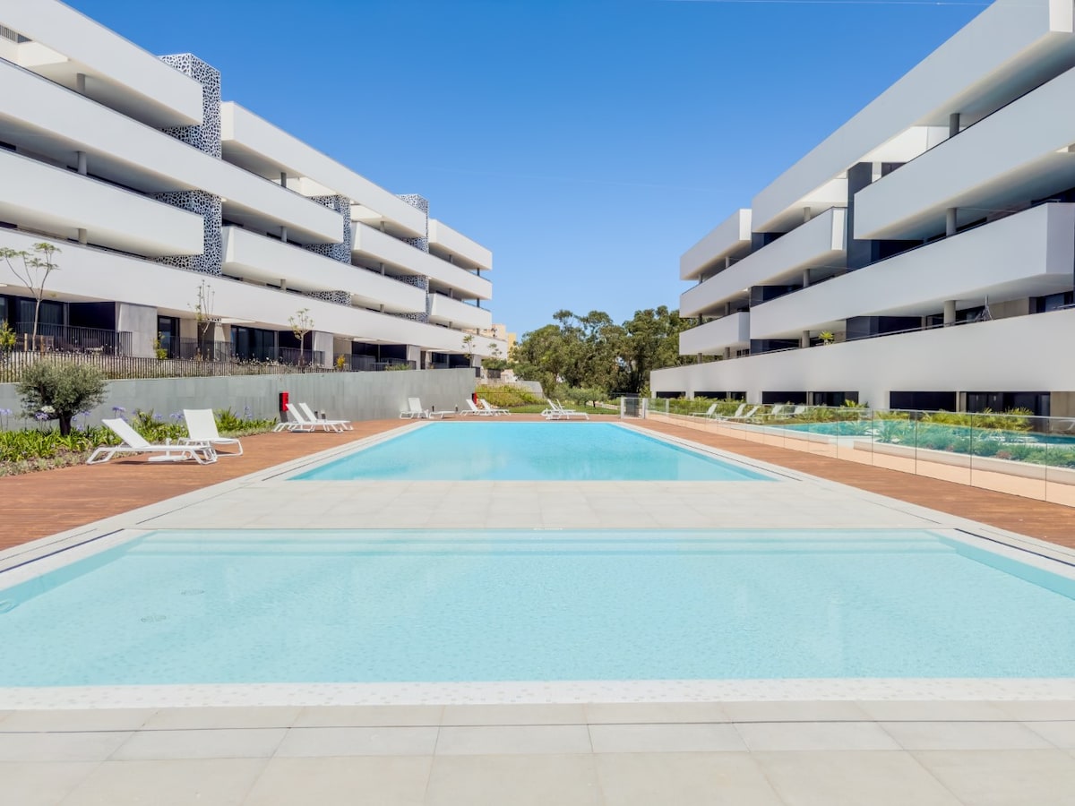 Welcome to Lagos Lounge! Full relaxation on a massive 59m² (636 sqft) outdoor patio, perfect for dining or lounging in Algarve’s sun. Enjoy a modern apartment with fully equipped chef's kitchen, cozy living area, two bedrooms, washer (and dryer), and more... Just a 10 minute walk to Lagos Old Town! Large pool, gym, and sauna. Be one of the first guests in this brand new building! A luxury getaway in the heart of the action.