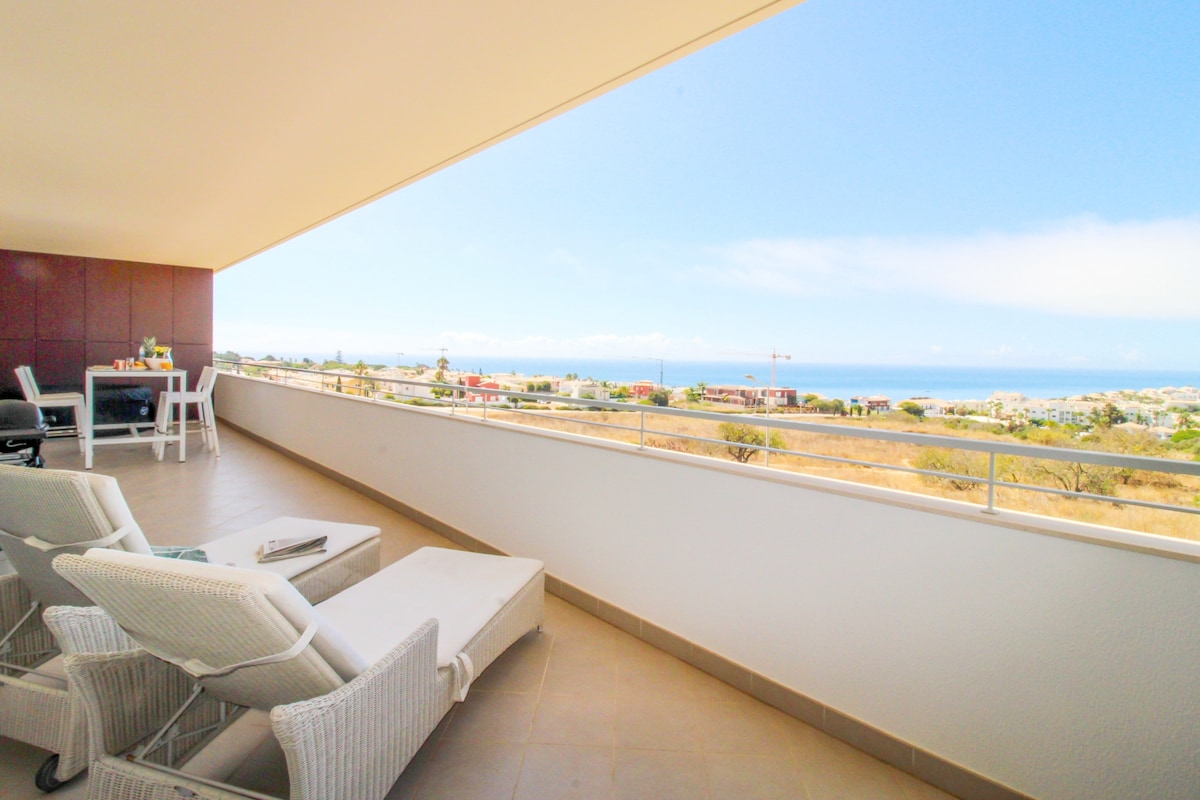 T3 modern apartment with large balcony and panoramic views over Lagos bay, in gated community with 2 outdoor pools and 1 indoor heated swimming pool, sauna, Turkish bath, gym, in door play ground to children's, with spacious living room and kitchen full equipped, 3 bedrooms, 2 bathrooms, air conditioning & inside box parking includes a barbecue