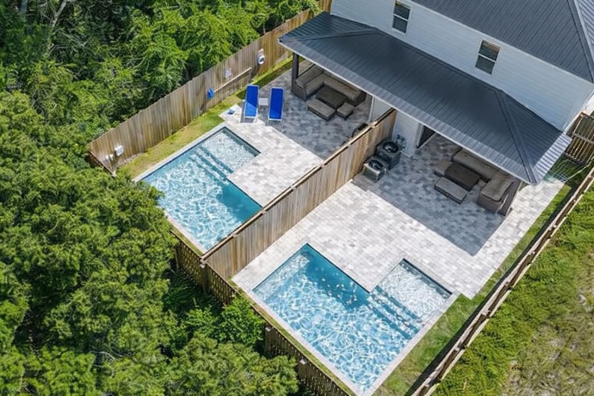 You'll love this luxurious beach getaway for its private heated pool, outdoor lounging, blazing fast internet, chef's kitchen and upscale appointments. We're a five-minute walk to the beach, a five-minute drive to Camp Helen State Park, 8 minutes to Rosemary Beach & 30A and 10 minutes to Pier Park! Pool heating is available for $40/day. Details below. Ask about our 6 seat golf cart available for rent for $125/day We are dog-friendly with payment of a $170 pet fee. Three dogs maximum.