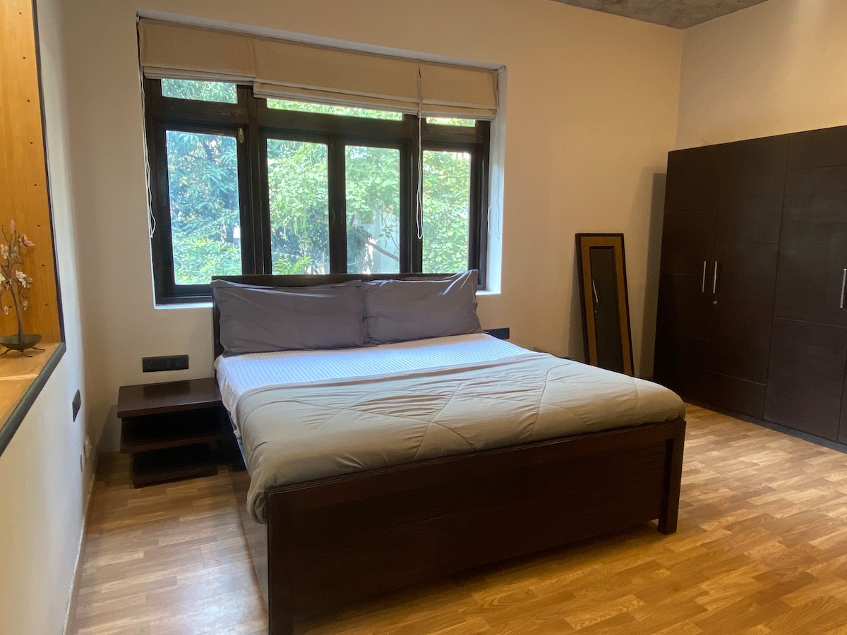 Apartamento de 1 dormitorio totalmente amueblado ubicado en el corazón de Delhi Sur, en el elegante barrio de Jangpura Extension. El alojamiento cuenta con aire acondicionado, nevera, cafetera y una cocina totalmente equipada. También hay una lavandería disponible con cargo. ¡También ofrecemos una plaza de aparcamiento! La zona es muy céntrica y también tiene muchos restaurantes y tiendas de comestibles a poca distancia a pie. La estación de metro también está a poca distancia a pie. El barrio es muy tranquilo con parques verdes.