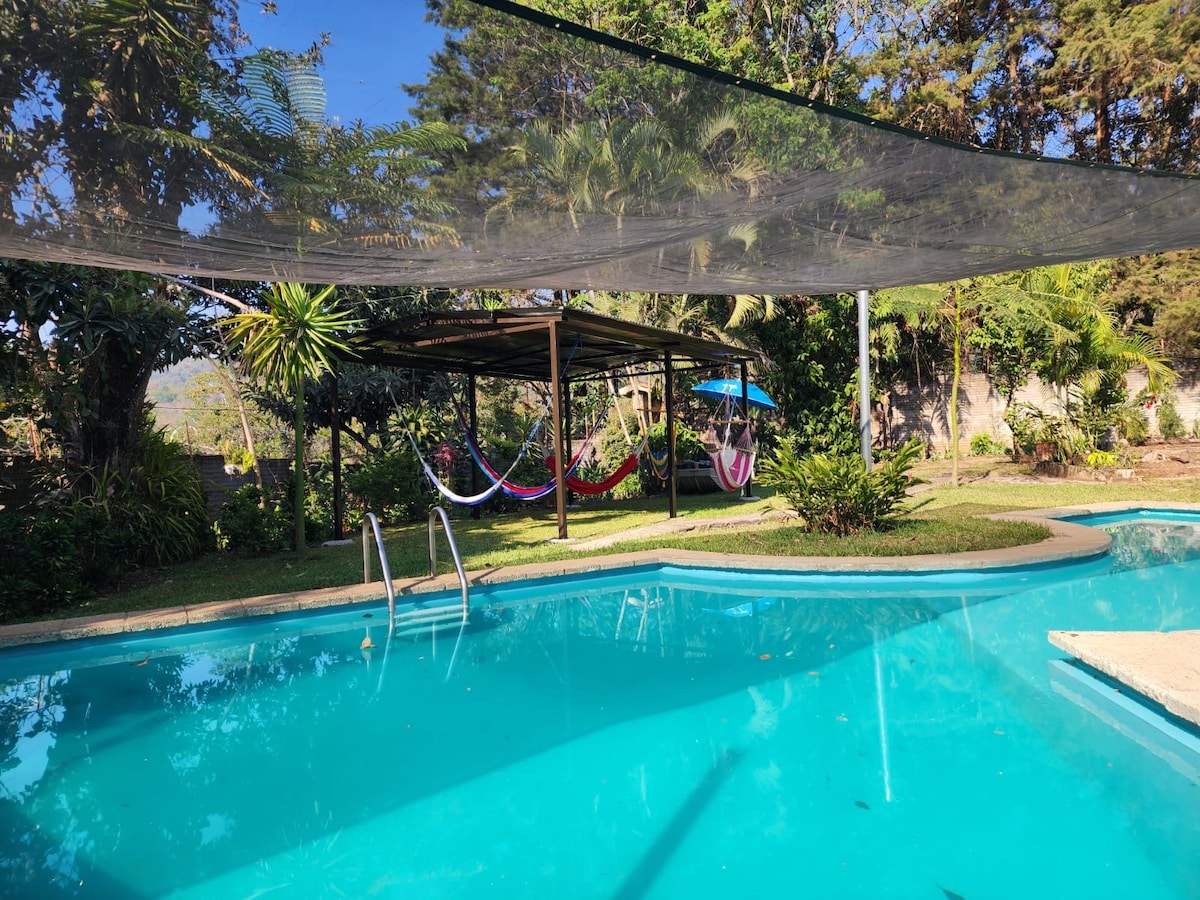 A sólo 45 minutos de la ciudad de Guatemala (y todavía en el departamento) se puede disfrutar de este paraíso! Disfrute de un café o té de cortesía en el muelle por la mañana, refrésquese en la piscina, disfrute de las hermosas puestas de sol y siéntese alrededor de una hoguera por la noche. Desde la casa se puede disfrutar de la vista del Volcán de Agua de día y de las luces de la plantación de aguacate de noche. Toda la casa, el patio y la piscina son tuyos para disfrutar de una escapada perfecta a la ciudad. Síguenos en IG @LaCasaDeAmati y compártenos en FB