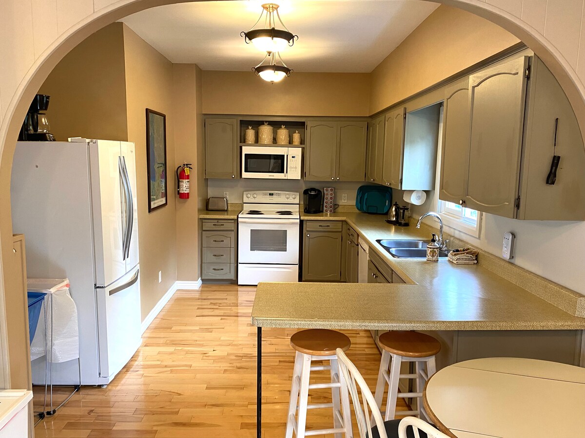 ¡ESQUIA DENTRO Y FUERA desde la terraza trasera (dependiendo de la nieve)! Observa la cantidad de asientos cómodos para NUEVE PERSONAS alrededor del televisor que muchos otros lugares no tienen. Al final de un largo día de esquí, tener un lugar cómodo para que todos se sienten es lo que les falta a la mayoría de los chalets. Disfruta del hermoso chalet de nuestra familia, renovado, en la PLANTA BAJA con 2 dormitorios, 2 baños y 6 camas, convenientemente ubicado junto al Blue Mountain Inn. Blue Mountain Village está a 7 minutos a pie. Ubicación, ubicación, ubicación.