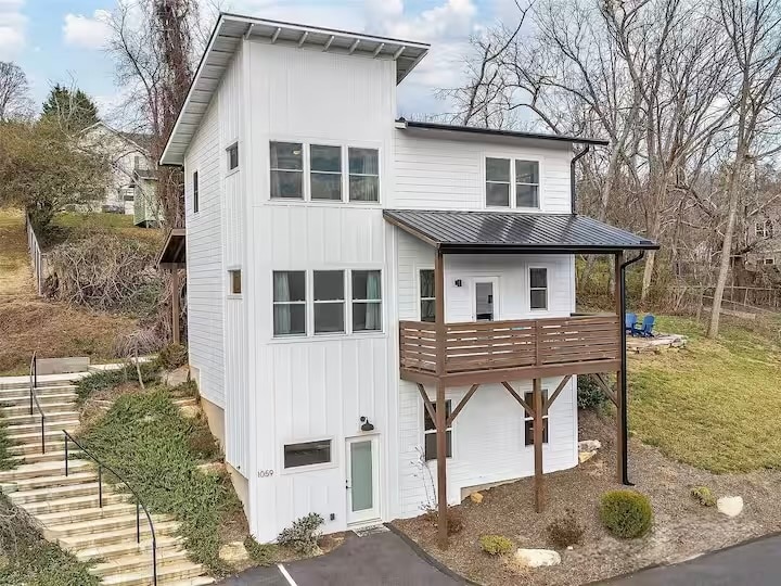 Disfruta de una experiencia con estilo en este alojamiento céntrico en Lake Junaluska. De nueva construcción, con chimenea de leña interior/exterior, porche envolvente, patio trasero vallado, zona de comedor exterior, mecedoras en el porche y todas las comodidades de un hogar. ¡Esta casa de 2 pisos es espaciosa y cómoda! Cuenta con 2 televisores, DVD e internet, mucho aparcamiento, acceso Smartlock, a pocas manzanas del lago, es una casa de vacaciones perfecta durante todo el año. Ven a esquiar y hacer tubing en invierno o a hacer senderismo y tubing en verano.