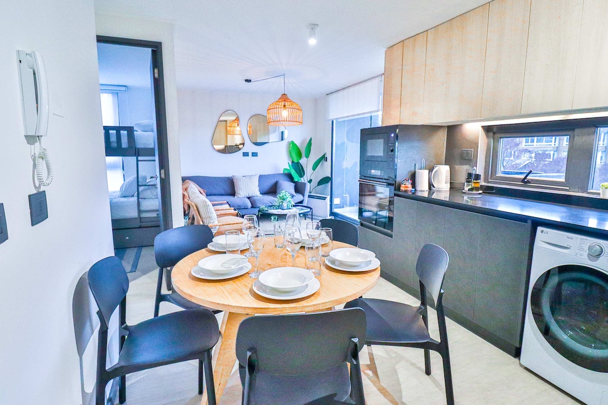 Espectacular departamento, estacionamiento techado y piscina temperada en el edificio. Ubicado cerca a la costanera, este departamento cuenta con sábanas y toallas incluidas y una cocina completamente equipada con refrigerador panelable, cocina encimera eléctrica, campana de extracción, microondas, horno eléctrico. Smart tv en la habitación principal.