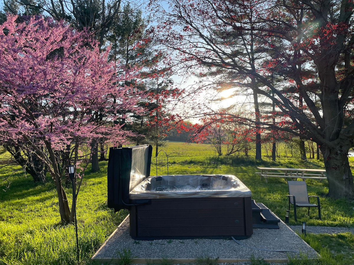 Descansa y refréscate en esta cabaña de troncos de 1836 con vigas originales talladas a mano y la sensación de una época pasada. Nos esforzamos por dar vida al presente aquí con muchos toques modernos y comodidad en todas las habitaciones. Una cocina completa con extras especiales como lavavajillas, triturador de basura y cocina de gas de tamaño completo y una nevera con máquina de hielo. Toda la casa está envuelta en porches donde hay espacio para disfrutar de la naturaleza y la tranquilidad de la vida rural. Fuera del porche hay una enorme bañera de hidromasaje al aire libre para 8 personas.