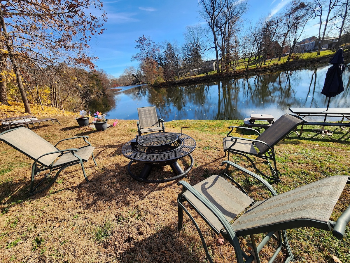 El alojamiento en New Oxford está rodeado de naturaleza, te alojarás en uno de los lugares más únicos. Tiene 3 maravillosos dormitorios con 4 camas tamaño queen y 2 camas tamaño king. Disfruta de la fantástica zona privada para pescar, navegar o asar, las increíbles vistas desde prácticamente cualquier lugar de la casa, o siéntate en el porche cubierto para tomar aire fresco. Trae un kayak o una canoa; ofrecemos un bote a pedales gratuito. La casa está a 20 minutos del distrito histórico de Gettysburg Battlefield, museos. Espacioso para familias grandes y reuniones.