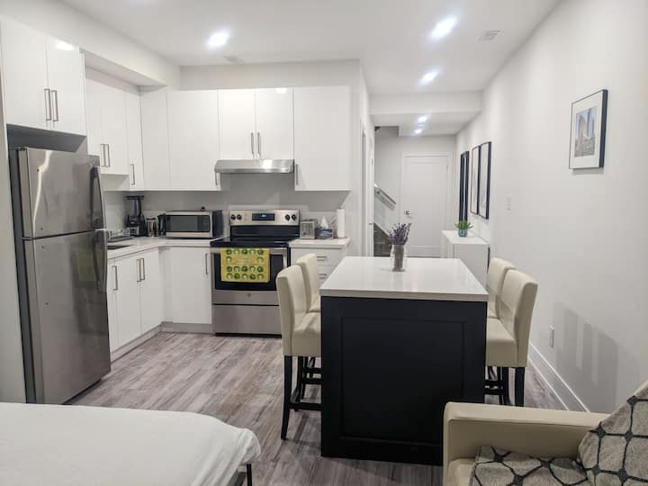 Estudio moderno y luminoso en Upper Beaches Disfrutá de este acogedor monoambiente recién renovado con cocina completa, baño privado y entrada independiente. Luminoso, silencioso y moderno, es perfecto para una o dos personas. Incluye lavandería en la unidad, wifi y todos los elementos básicos. Ubicado en un tranquilo barrio de Upper Beaches, cerca de cafés, parques, transporte público y el lago, ¡tu escapada relajante a Toronto te espera!
