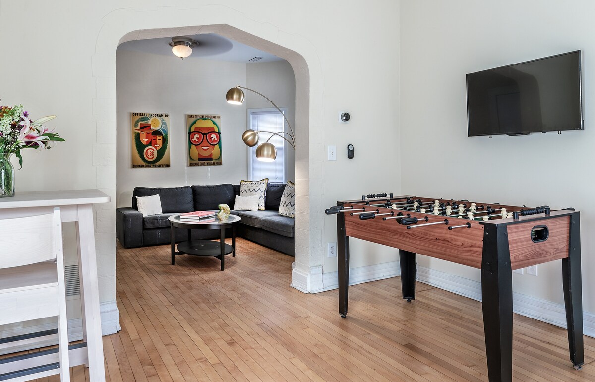 Siéntete como en casa en nuestro apartamento de 2 dormitorios y 1 baño recién renovado, espacioso e inmaculadamente limpio, perfecto para tu próximo viaje en familia, de trabajo o con amigos. Ubicado en una calle arbolada en un barrio familiar y a poca distancia a pie de tiendas, restaurantes, cafeterías, bares y mucho más. A tiro de piedra de Southport Corridor/Wrigleyville/Lakeview, Lincoln Square, Roscoe Village y todo lo que el Northside tiene para ofrecer. Internet Gigabit con wifi y todo lo que necesitas para vivir y prosperar en Chicago.
