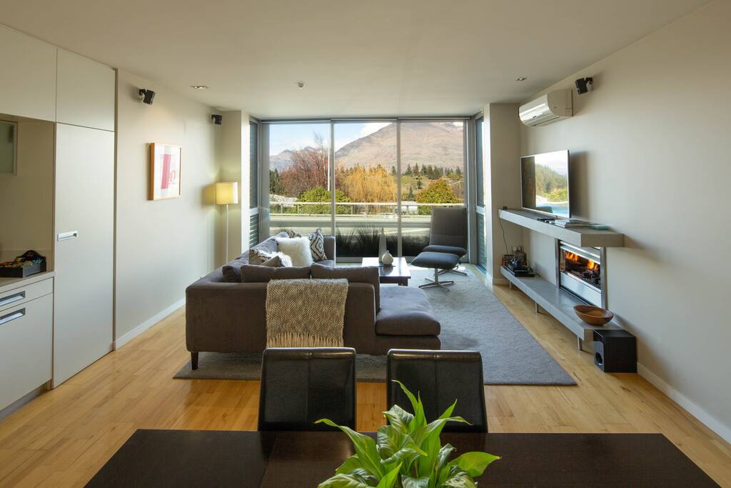 This is a spacious one Bedroom Apartment with views of the Remarkables and Ben Lomond. Spacious lounge,Queen bed and single bed in the separate bedroom, and a Sofa Bed .Fully equipped kitchenette with stove-top and microwave, tea and coffee making facilities etc, 42 LED/LCD (with USB port) flat screen Sky TV in lounge, 32 LED/LCD Sky TV in bedroom, mountain views, free parking. FREE UNLIMITED WIFI.