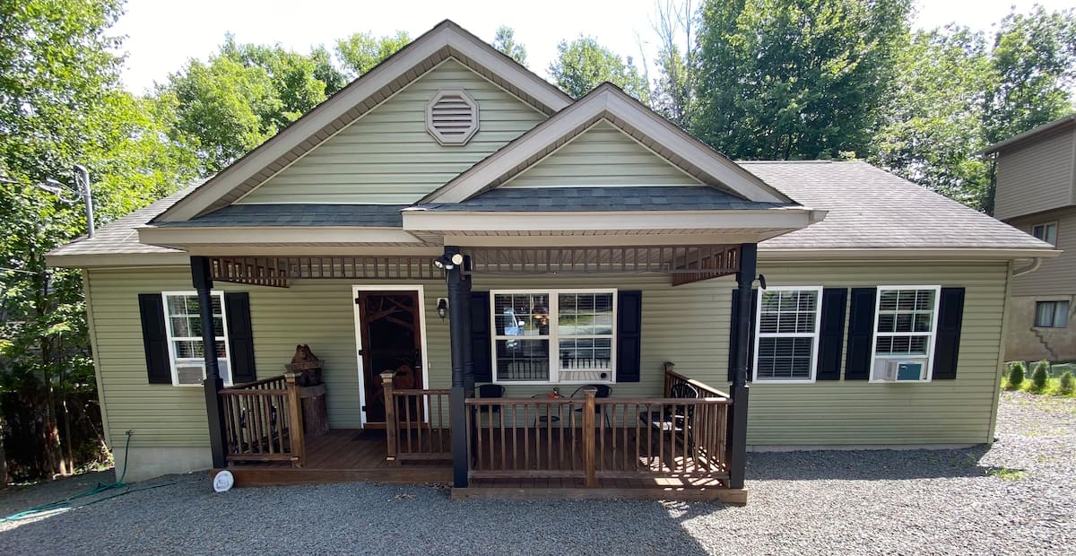 Recientemente renovado 2 dormitorios/1 baño cabaña que duerme 4. La cocina está totalmente equipada con horno, estufa, nevera, microondas, cafetera/kcups y tostadora. La cabaña se encuentra en un acre .50 de tierra con un fogón y asientos adirondack perfecto para una noche de olores. El lago Wallenpaupack está a 2 minutos a pie de la casa de campo. La comunidad tiene derechos de lago, con su propia playa privada y acceso al lago, que los huéspedes serán bienvenidos a usar. Restaurantes, estaciones de esquí y alquiler de botes cerca.
