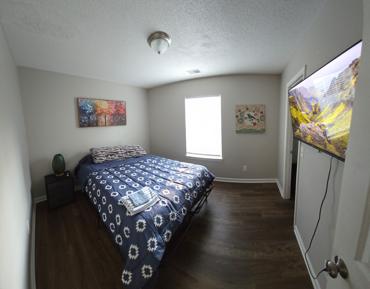 A solo 10 minutos de la ruta 77, Fort Jackson y el centro de COLA a solo 20-30 minutos en coche. El estudio está situado en una hermosa comunidad familiar, suburbana y junto a un lago en Columbia SC, con tiendas de comestibles y gasolineras a pocos minutos. Disfruta de una noche equipada con pantalla de cine y proyector, y luego termina la noche derritiendo tus preocupaciones en una cama de espuma viscoelástica tamaño king increíblemente relajante. Deja que nuestra lavadora/secadora todo en uno haga el trabajo por ti y despierta con un ciclo terminado y los sonidos de las aves nativas de Carolina del Sur.