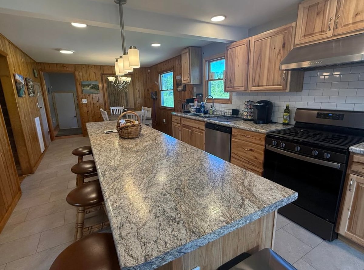 ¿Quieres escapar? Ven a la cabaña de Kurt, en 40 acres de tierra boscosa privada, ubicada justo en medio del Bosque Nacional Hiawatha. Moderna casa de 3 dormitorios y 2 baños con todas las comodidades de una nueva construcción, incluidos electrodomésticos de acero inoxidable, lavavajillas, microondas y máquina de hielo. Sala de recreo acabada con sofá cama para 2 personas. ¡La casa también cuenta con chimenea de leña y sauna! Trae tus juguetes y disfruta de los lagos de pesca cercanos, senderos para motos de nieve, tierras de caza, senderos para todoterreno, senderismo, raquetas de nieve,