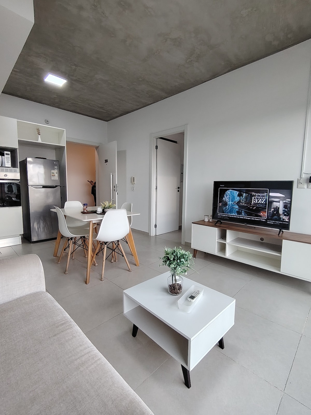 Este departamento de 1 dormitorio es ideal para hasta 3 huéspedes, ofreciendo un espacio moderno y acogedor. Cuenta con una cómoda cama matrimonial en el dormitorio y un sofá cama en la sala de estar para mayor comodidad. La cocina totalmente equipada y el baño moderno con acabados de calidad crean un ambiente funcional y elegante. ¡Perfecto para parejas o pequeños grupos!