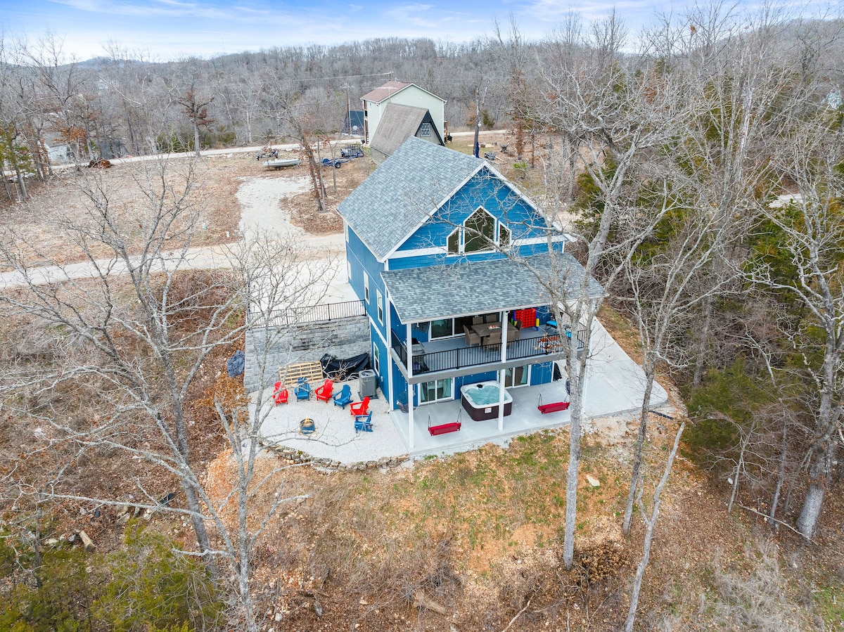 ¡Te damos la bienvenida al paraíso en Table Rock Lake! Ubicada en las impresionantes colinas de Ozark, nuestra casa del lago ofrece alojamiento de lujo y servicios de primera calidad, como un jacuzzi, un fogón y un porche con mosquitero y una puerta de garaje estética. ¡Las vibraciones son inigualables! A los huéspedes les encantará: - Jacuzzi privado con vistas increíbles. - Fogata con asientos cómodos. - Televisores inteligentes en todas las habitaciones y el salón. - Mesa de juegos infinita con juegos de mesa clásicos y nuevos - Parrilla de propano. - Cocina y baños completamente equipados.