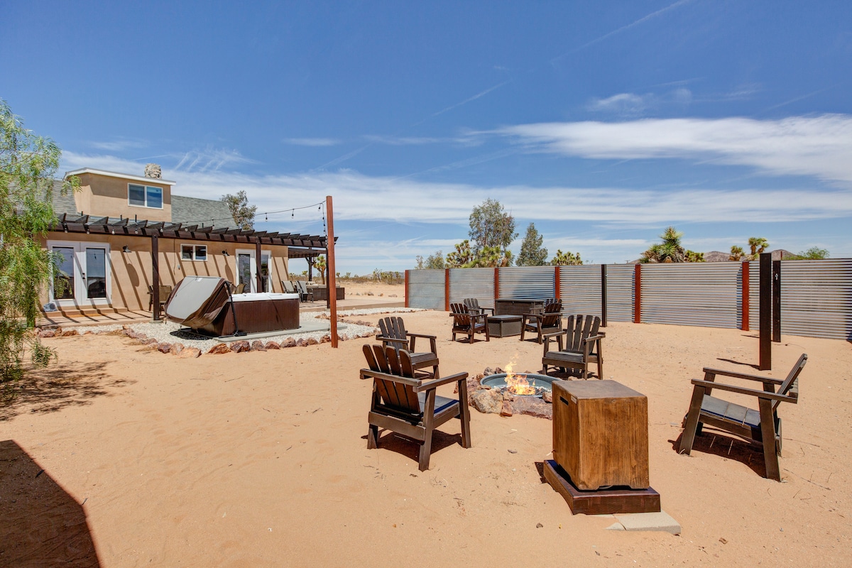 Disfruta de este oasis del desierto «tipo cabaña» con todas las comodidades que un huésped exigente desearía. La casa cuenta con una cocina totalmente equipada, 2 dormitorios y un gran loft (2 camas tamaño queen y 2 camas completas), dos baños grandes y modernos, uno con ducha para 2 personas y una bañera grande, chimenea de gas, jacuzzi, chimenea al aire libre, hamacas grandes, wifi y televisores inteligentes. Vida interior/exterior como solo se puede tener en el desierto. Nuestra esperanza es que BottleRock sea un refugio relajante para que te reconectes, reflexiones y te diviertas.