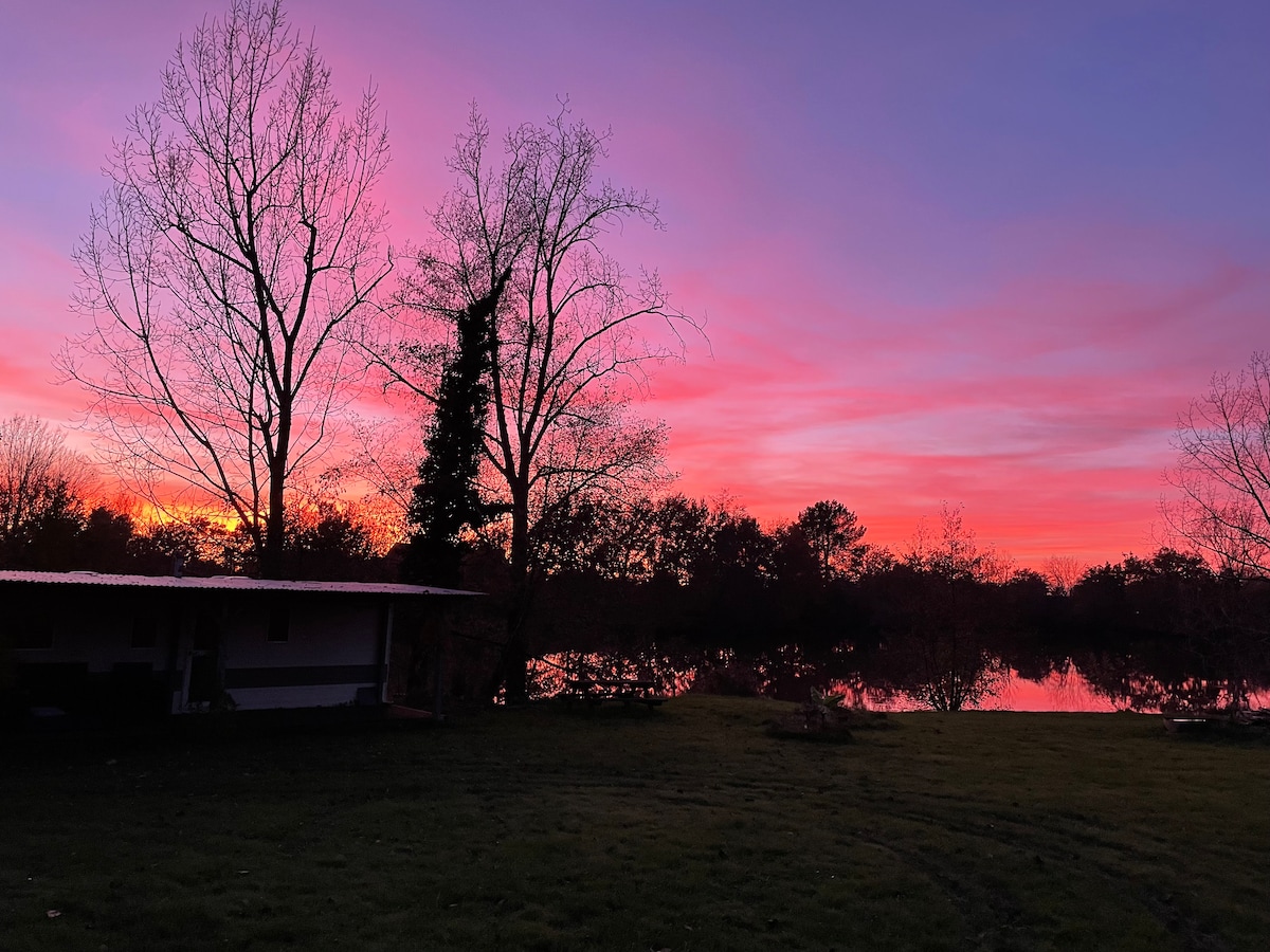 Charmant logement au bord du lac 3hectare, calme et nature. Accueille 4 voyageurs. Poste de pêche inclus avec pêche à la carpe no kill (sans carte). Balades en barque avec gilets. Séjour romantique possible avec décorations spéciales. Repas sur place : formule complète 20 €, midi 10 € avec boisson et dessert. Depuis les vitres, profitez d’une vue imprenable sur le lac et d’une détente totale. Venez savourer un moment de détente totale en pleine nature, avec une vue imprenable sur le lac.