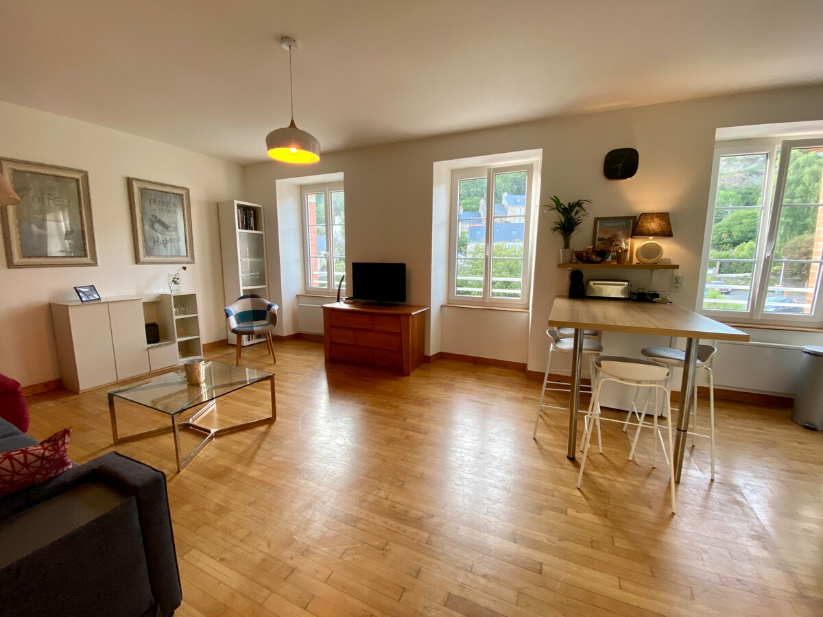 LA CABANE, una bonita construcción de madera reciente inundada de luz sobre el río Le Léguer cerca del centro de la ciudad con una pequeña terraza privada para sus aperitivos en un entorno verde. La cocina está bien equipada y la sala de estar es agradable. La ropa de cama es nueva y de muy buena calidad. A pocos minutos del alojamiento, disfrute del mercado más grande de la región los jueves, el cine, los restaurantes y los bares.