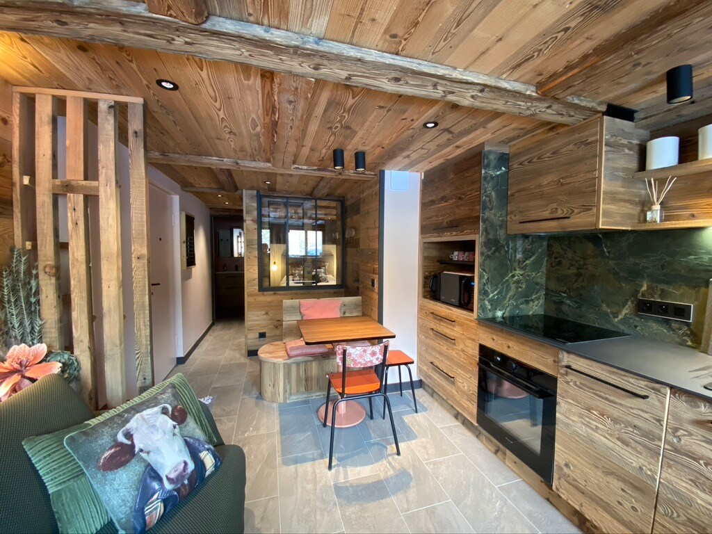 Profitez d'un logement élégant en plein cœur du village. Totalement rénové à neuf par une décoratrice, avec chambre séparée, nombreux rangements, WC séparé, salle de bain avec belle baignoire intégrant un espace douche de 90x90, coin repas avec banquette confortable. Proximité à pied (150m) : pistes, commerces, boulangeries, magasins de sport (loueurs ski/vélos). Idéal, pour couple cherchant un cocon tout confort pour séjour en amoureux ou pour jeune famille avec 1 enfant (idéal 2/3 pers).