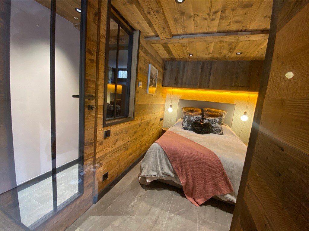 Magnificent luxurious apartment-chalet of 110m2, with terrace. Benefit from 3 spacious bedrooms on the lower level. The apartment is new and is ideally located at the end of the “Le Laisinant” slope. It is 200m from the bus stop, 5 minutes walk from all the shops in the center, and access to the ski lifts. The return is done on skis. Parking and a closed box with direct access to the apartment can park two cars.