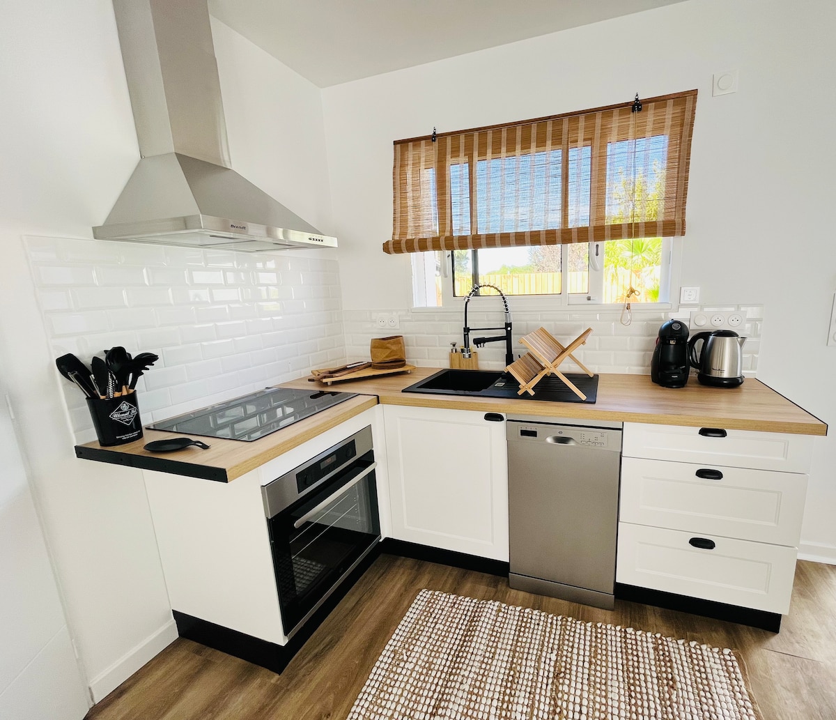 41 m², con aire acondicionado, nuevo y luminoso sin vecinos enfrente con jardín cerrado, terraza, barbacoa, aparcamiento privado. Cocina muy equipada con horno, microondas, lavavajillas, lavadora... sala de estar con TV, wifi, equipo de música bien situado entre el bosque y la playa con carril bici a 200 m, zona de baño a 800 m, Intermarché y panadería a 400 m . hasta 4 bicicletas disponibles de forma gratuita alojamiento referenciado en la oficina de turismo con la referencia OTCDB0202 «villa optimist»
