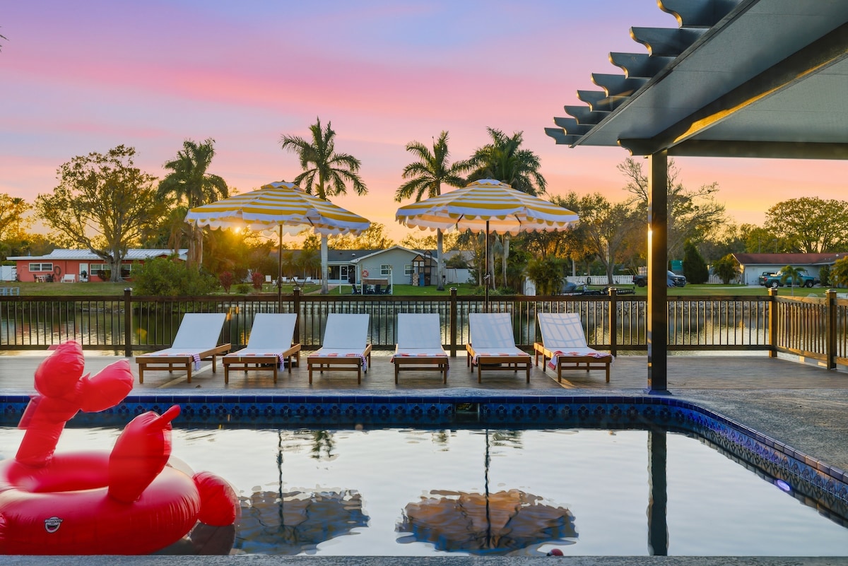 ¡Se agregó la opción de pileta climatizada para enero de 2026! Propiedad frente al agua, la escapada perfecta para relajarse en paz o divertirse en familia. Ven a explorar nuestro hermoso y resistente bungalow de playa en la costa del golfo:) con todas las comodidades. Disfrutá de la casa y la pileta con un oasis frente al agua solo para vos. Salí por la puerta principal y caminá 3 cuadras hasta las costas arenosas de Indian Rocks Beach. Consulta cientos de evaluaciones para obtener más información sobre este anfitrión, nuestra zona, nuestro estilo. BTR#1734 VRR#0422