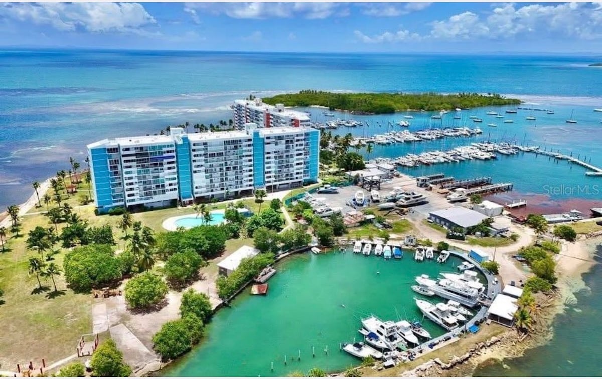 Welcome to Our Property at Dos Marinas I. Unwind at this oceanfront apartment. A million dollar view to icacos, culebra, Vieques and palomino from the balcony. This Apartment is a place for you to retreat, relax, reset and revive yourself. Located close to four marinas,shops and restaurants. The condo has a Olympic swimming pool, gazebos, basketball and tennis courts. A Fully Equipped bedroom with AC. Wake up to the Ocean breeze and sound. Note: Ac is only in the bedroom.