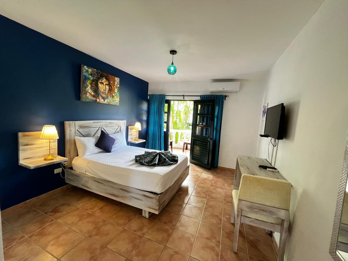 Encantadora habitación con bano completo privado y vista al mar para 2 personas. Con acceso a balcon totalmente privado con vista mar. Ubicado en una estupenda villa con piscina a 3 minutos del mar. Ubicado en una estupenda Villa Tropical de 5 habitaciones con hermosas piscina, terraza y una amplia sala de estar, compartida con otros huespuedes. A solo 3 minutos del mar.
