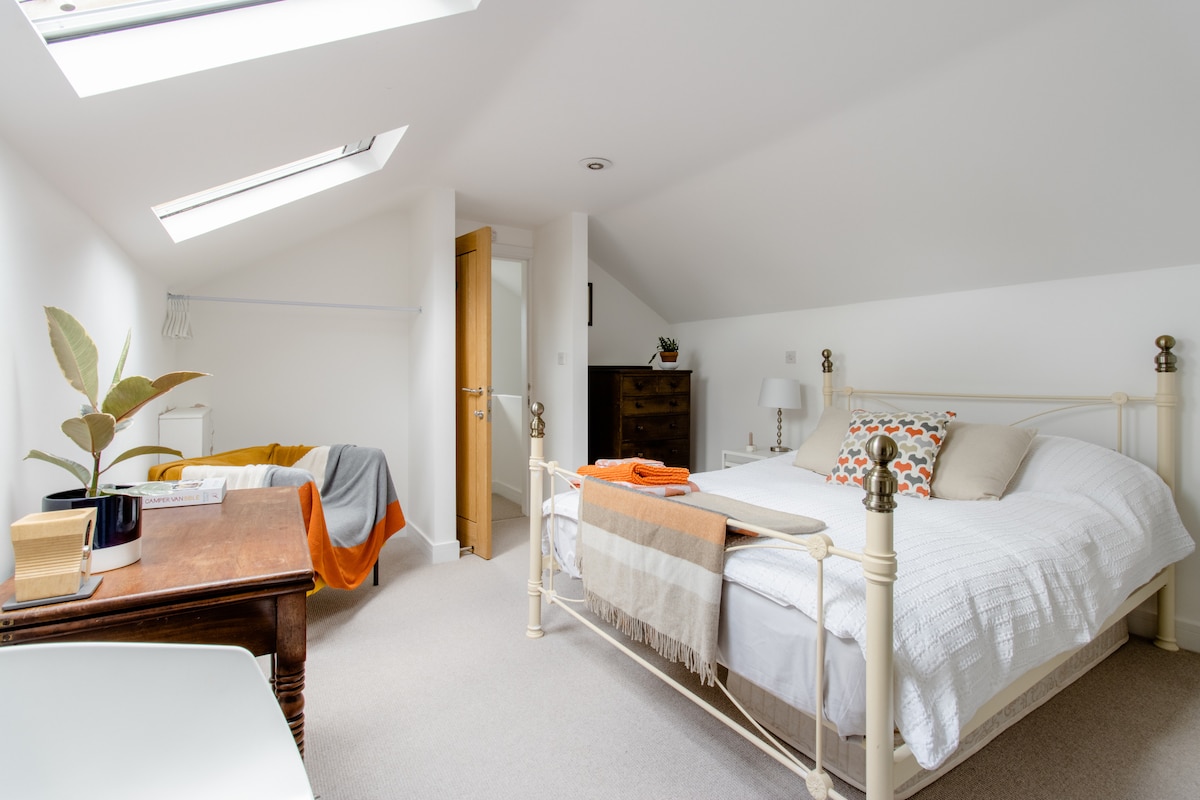 Our beautifully decorated annexe is completely self-contained with its own front door, luxury kingsize bed, en-suite, small FreeSat TV and mini kitchen including hob, microwave and fridge. There is also access via patio doors to our large garden. Please note that babies are welcome, please bring your own travel cot. Free on street parking is available on a very wide, quiet road.