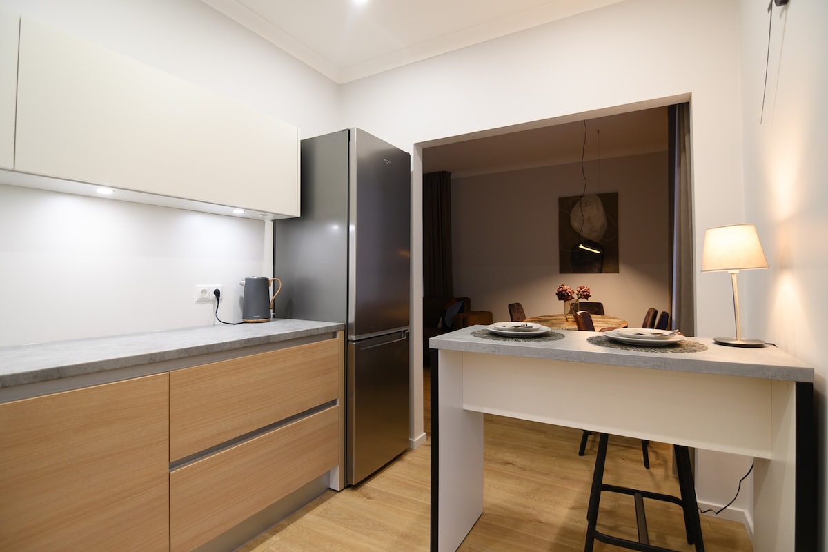 Bienvenido a este acogedor y moderno apartamento ubicado en el corazón del centro histórico. Aquí encontrarás una fantástica terraza privada, perfecta para saborear tu café por la mañana a la luz del sol y la tranquilidad. El apartamento está situado en la planta baja de un edificio de patio tranquilo, lo que garantiza la seguridad y la privacidad, ya que ningún extraño tiene acceso. Puedes estacionar tu auto de forma segura en el patio cerrado sin costo adicional.