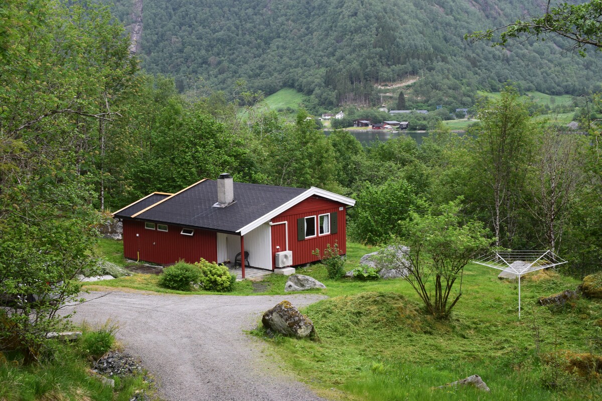 Denne hytta er et flott utgangspunkt for deg som vil oppleve fjordene og fjellene. Korte og lange turer. Med gården som base kan du oppleve fossefall og turistattraksjoner, og slappe av rundt bålet om kvelden. Hytta har egen terrasse med tak over og egen parkering. Stue og moderne kjøkken i samme rom, to soverom og nytt bad med vaskemaskin. Soverommene har dobbeltsenger (150x200 cm) og plassbygd seng (150 x 200 cm). Du kan leie kajakk, motorbåt, SUP eller sauna.