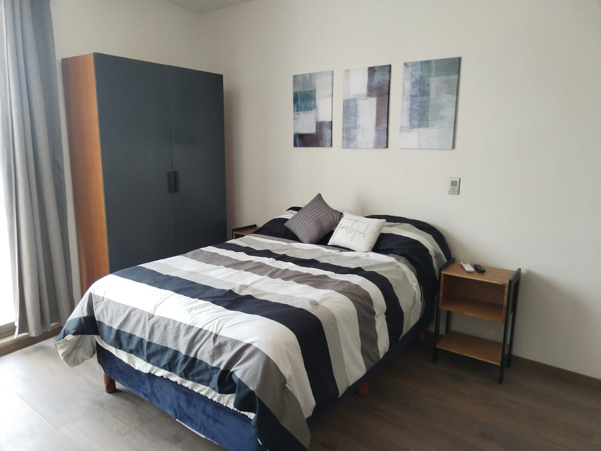 Descubre tu oasis personal en el corazón de la ciudad. Este alojamiento, diseñado para el viajero solitario, te ofrece un refugio de paz y tranquilidad. Con una decoración moderna y funcional, cada rincón ha sido pensado para tu comodidad. La habitación cuenta con una cama matrimonial de la mas alta calidad, un escritorio para trabajar y un baño privado impecable. Una cocineta con todo lo que necesitas. Tendrás total privacidad, pero estamos disponibles para ayudarte en lo que necesites.
