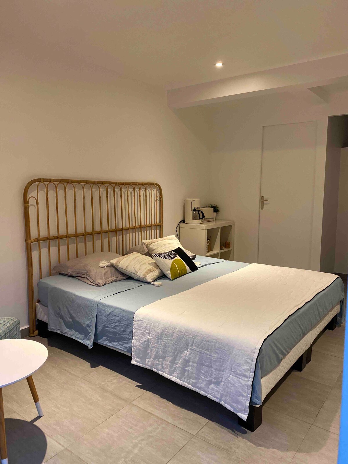 Loue au bas d'une jolie villa un appartement 3 pièces meublé tout confort. Idéalement situé entre campagne et mer, vous pourrez profiter d’un environnement calme et verdoyant. Vous pourrez rapidement accéder à la plage ou encore à la pharmacie (5 minutes en voiture). La première épicerie se trouve à 6 minutes de marche. L’emplacement offre la possibilité d’utiliser différents itinéraires pour visiter l’île de l'intérieur et rejoindre les villes périphériques.