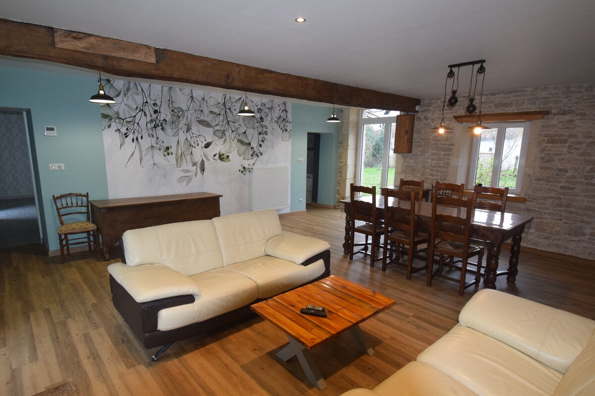 Casa de campo reformada en planta baja, tranquila situada en el campo. Ideal para una escapada romántica, cambio de escenario y relajación. Aire acondicionado, totalmente equipado (sábanas y toallas incluidas). OPCIONAL: SPA PRIVADO y PISCINA. Crea tu estancia a medida. Se puede reservar por noche si se incluye la opción de spa. A 15 minutos del futurocope, a 20 minutos del centro de Poitiers y a 25 minutos de Civaux.